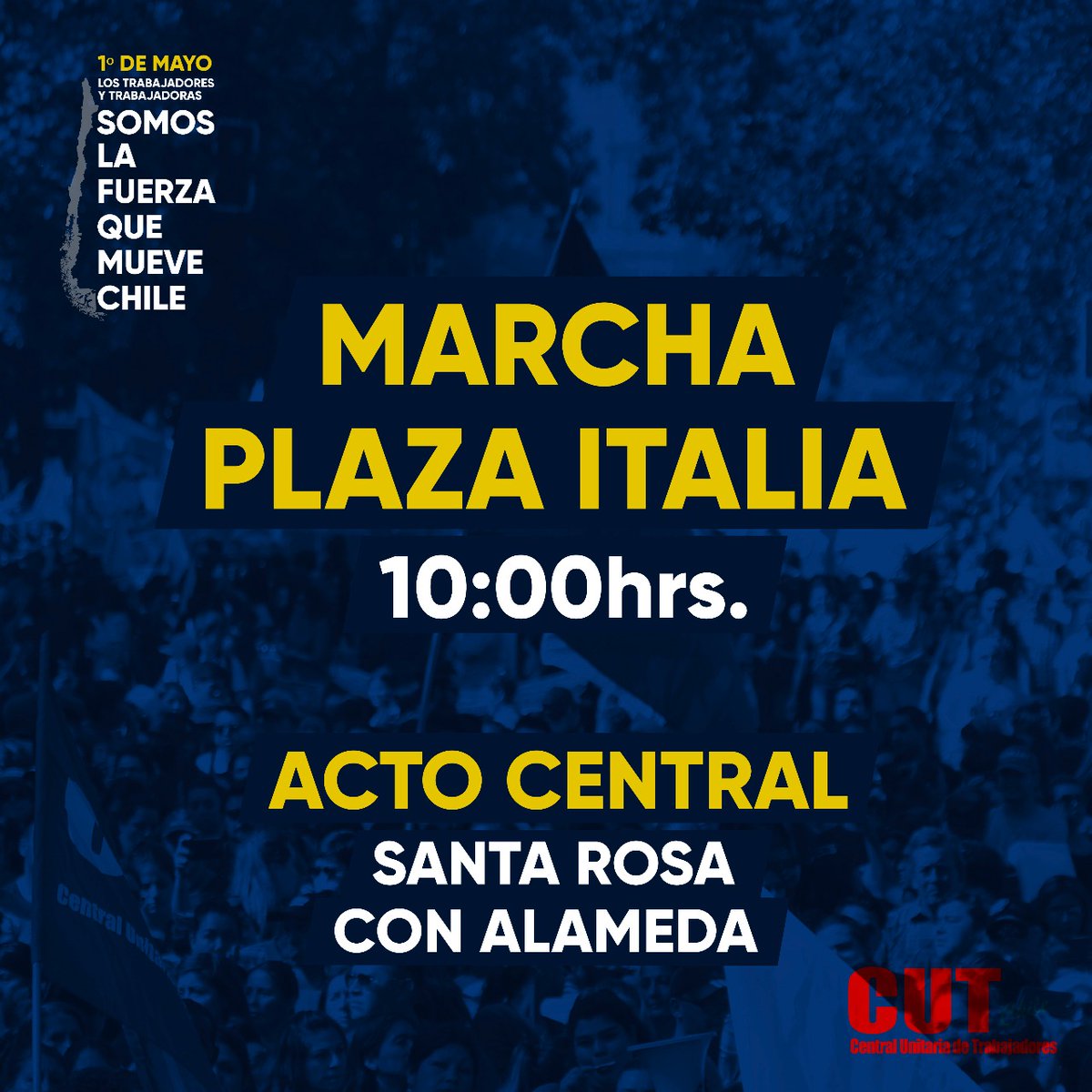Porque los trabajadores y trabajadoras somos la fuerza que mueve Chile 🚩 Este 1 de mayo nos reuniremos en Plaza Italia a las 10:00 horas para marchar por el #1deMayo #YoMarcho ✊ pic.twitter.com/rEktGLttos