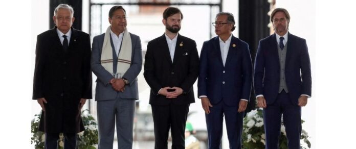 En la primera línea de los invitados estuvieron los mandatarios de Bolivia, Luis Arce; Colombia, Gustavo Petro; Uruguay, Luis Lacalle Pou, y México, Andrés Manuel López Obrador, Portugal, Antonio Costa, junto con los ex presidentes Ricardo Lagos y Michelle Bachelet Más atrás se instalaron ministros del gabinete, parlamentarios, representantes de organizaciones internacionales y agrupaciones de derechos humanos, entre otros.