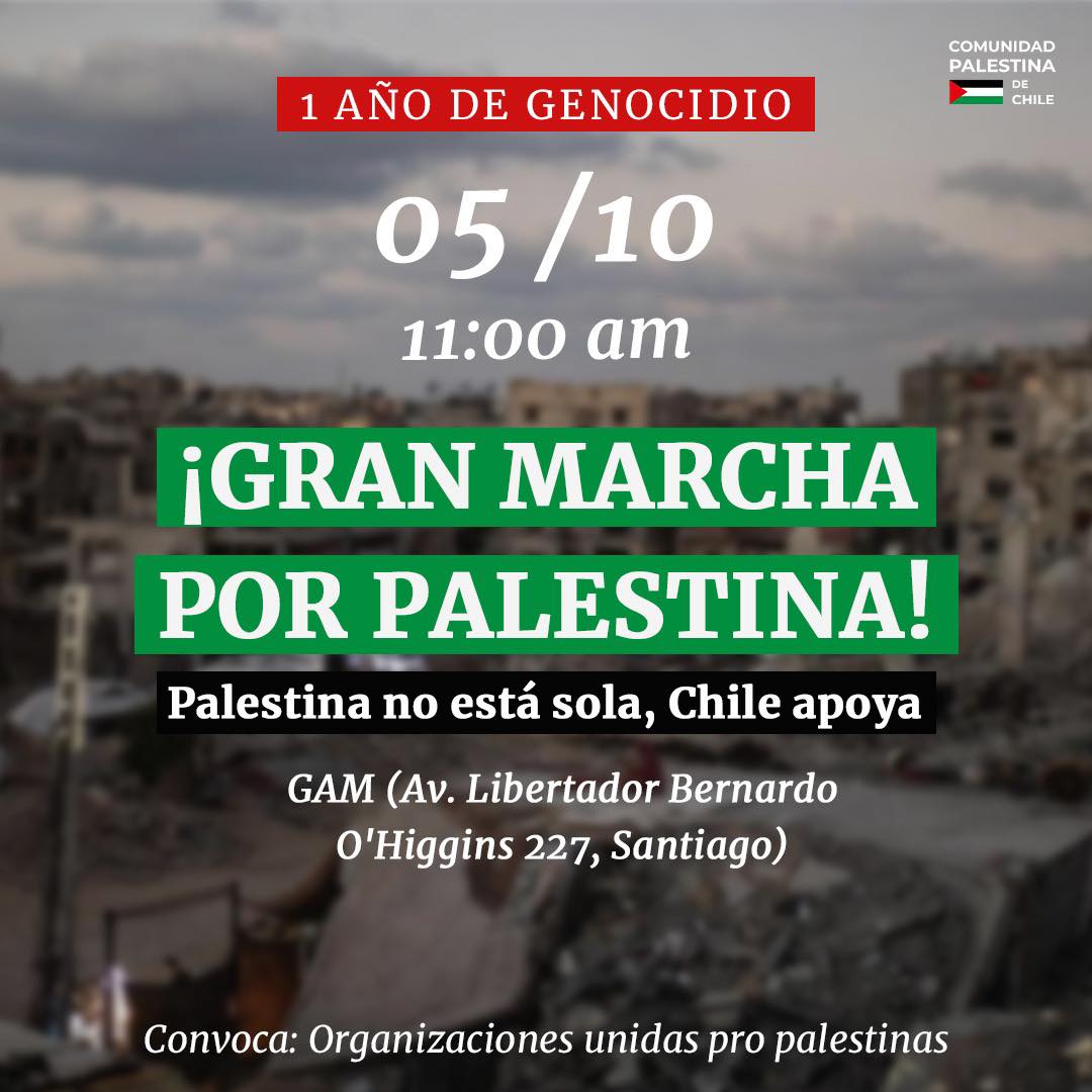 Comunidad Palestina en Chile convoca a una marcha por el centro de Santiago Por Palestina.