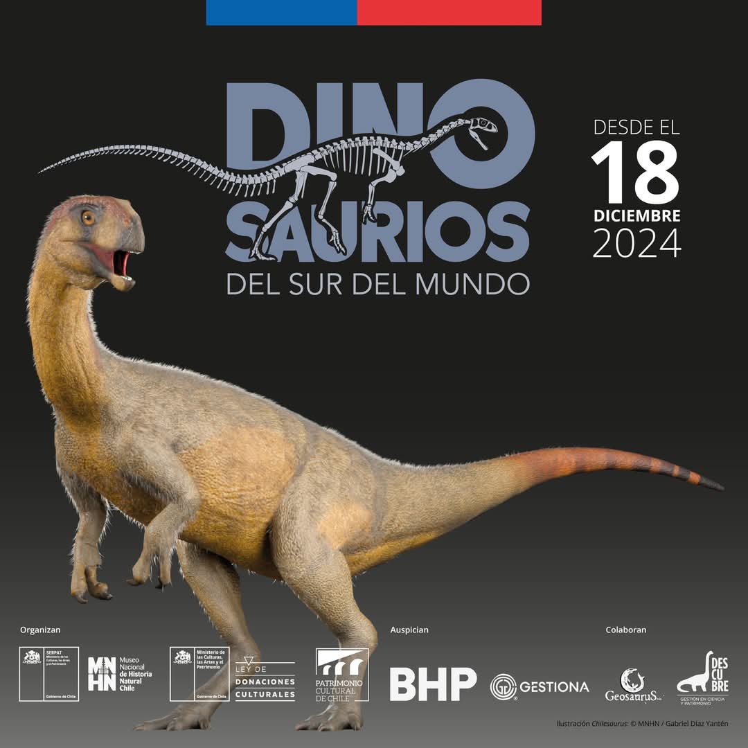 Comenzamos con Dinosaurios del Sur del Mundo en el Museo Nacional de Historia Natural. La exhibición pondrá a disposición de los visitantes, por primera vez en Chile, los fósiles originales de todos los dinosaurios descubiertos en nuestro país, algunos de los cuales han alcanzado relevancia científica a nivel mundial. Entre las atracciones que podrá encontrar el público que asista a la muestra, habrá 18 esqueletos de dinosaurios en tamaño natural; 12 esqueletos de aves realizados mediante osteotecnia; tres reconstrucciones de dinosaurios en vida, tal como poblaron el planeta hace millones de años; además de una animación de la deriva de los continentes, proceso geológico ocurrido en nuestro planeta hace cientos de millones de años atrás. Toda la información en la web del museo www.mnhn.gob.cl y en sus redes @mnhncl