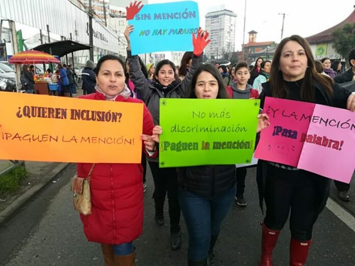 La dirigenta analiza la aplicación de leyes como TEA, SEP y la Ley N° 20.158 que norma el bono de reconocimiento profesional el cual no se extiende en plenitud para estos trabajadores de la educación.