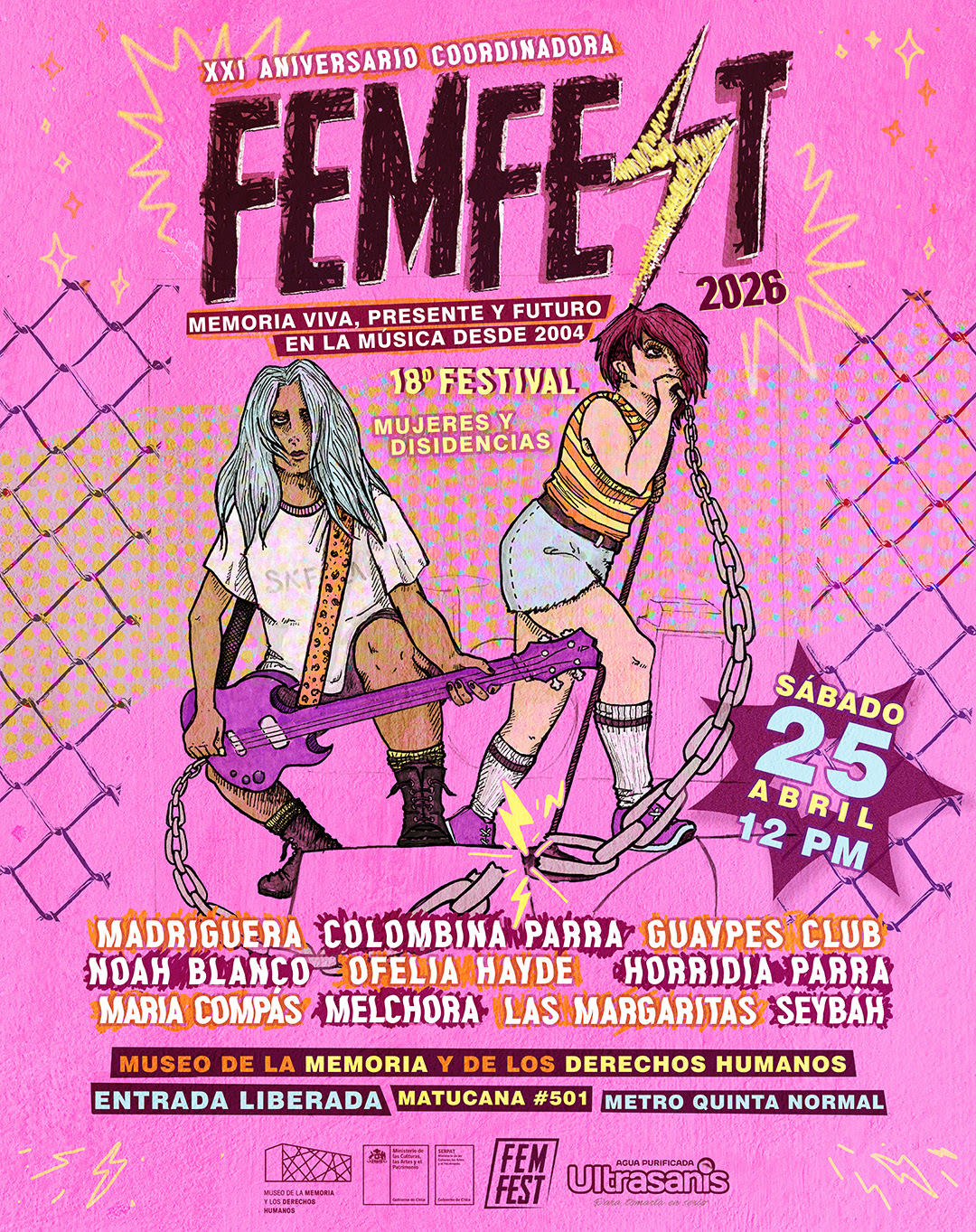 El principal festival de mujeres y disidencias Femfest llega con su XVIII versión hasta el Museo de la Memoria y los Derechos Humanos este sábado 25 de abril.